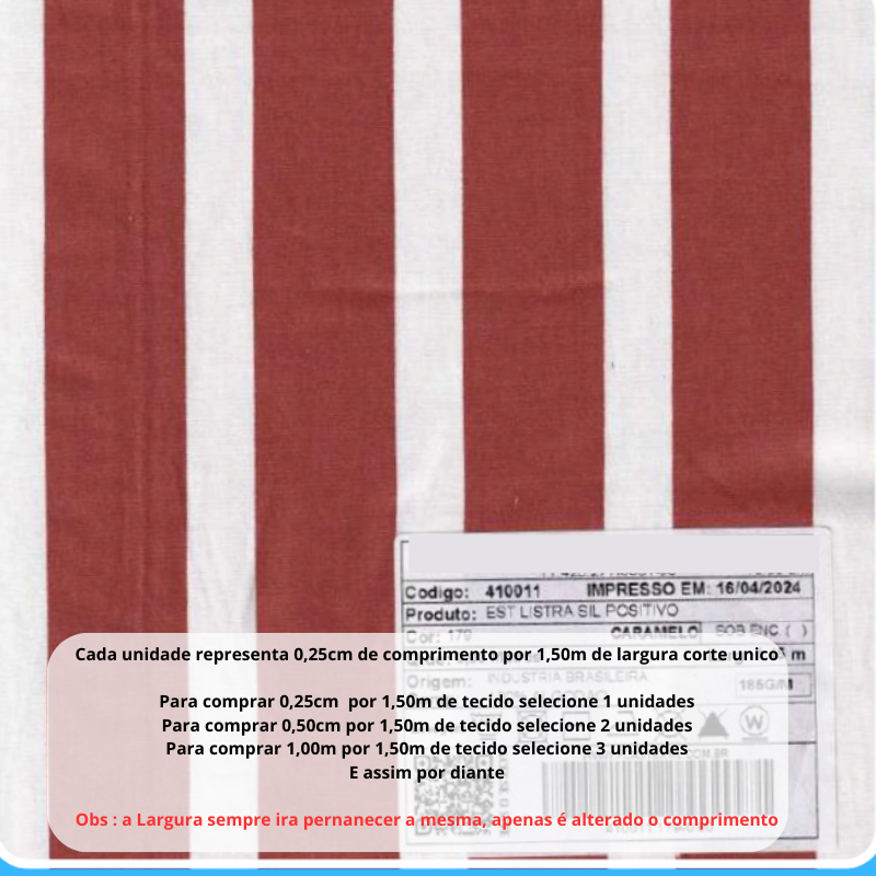 Compre o tecido tricoline Listrado 100% algodão Caramelo e conte com um ótimo resultado para as suas produções